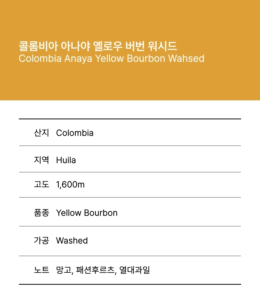 콜롬비아 아나야 옐로우 버번 워시드