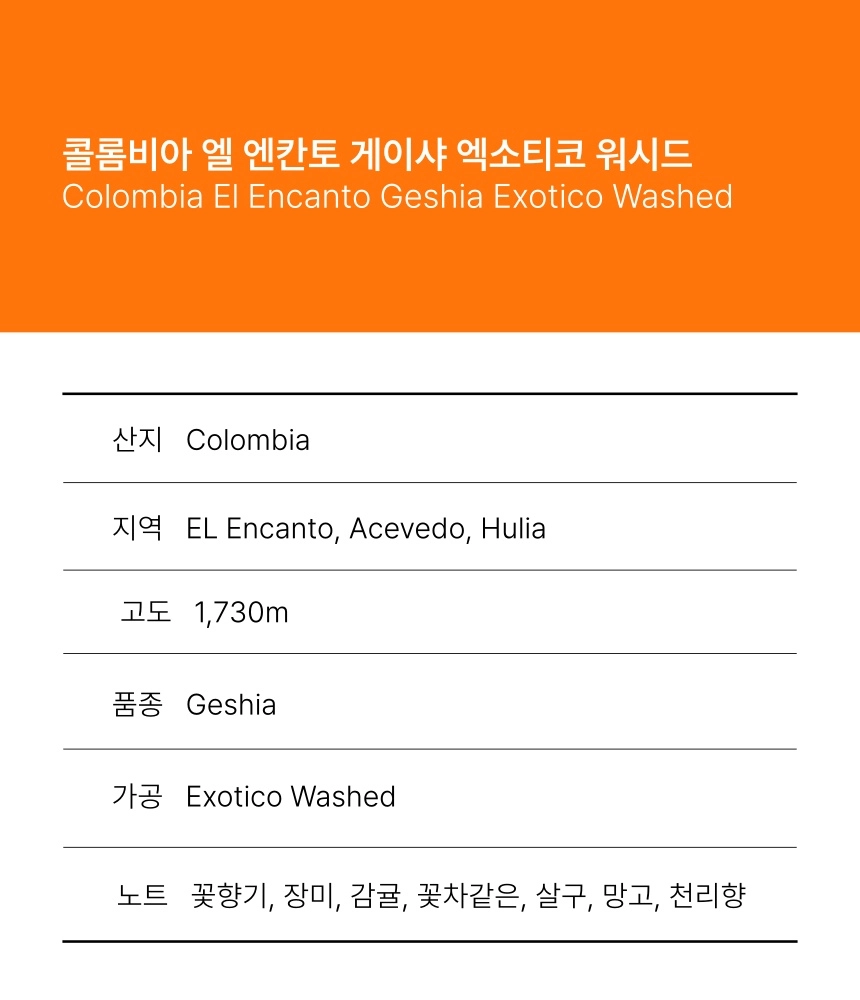 콜롬비아 엘 엔칸토 게이샤 엑소티코 워시드