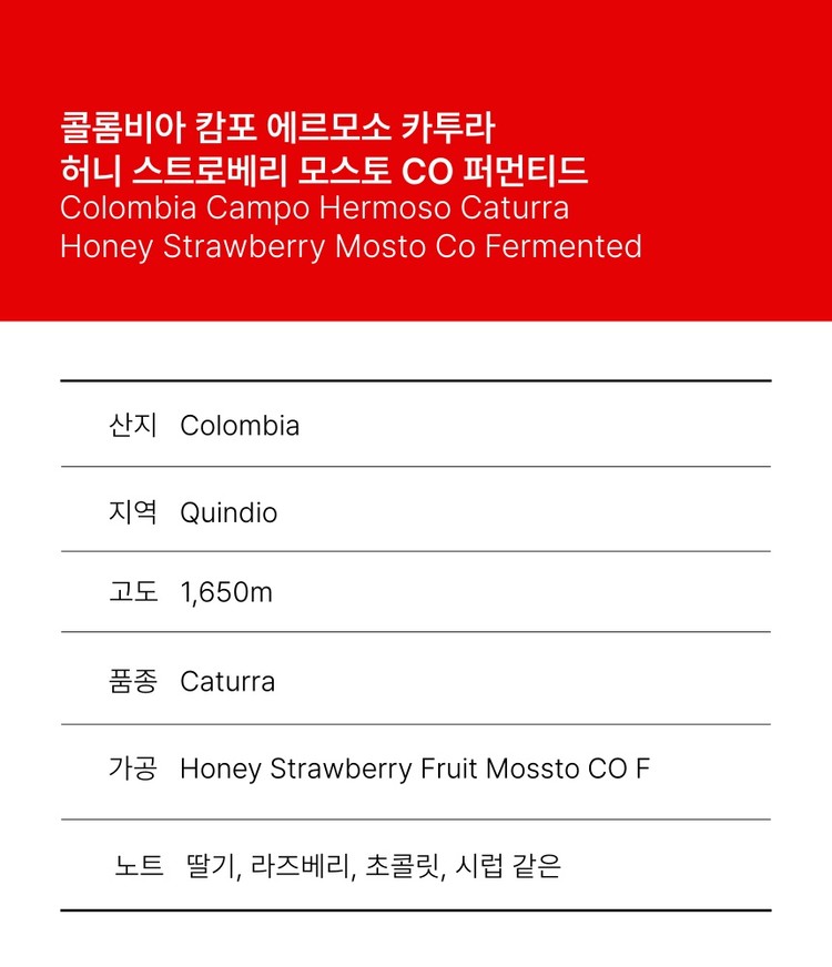 콜롬비아 캄포 에르모소 카투라 허니 스트로베리 프루트 모스토 CO 퍼멘티드