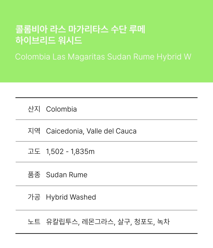 콜롬비아 라스 마가리타스 수단 루메 하이브리드 워시드