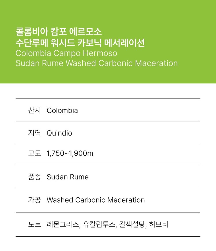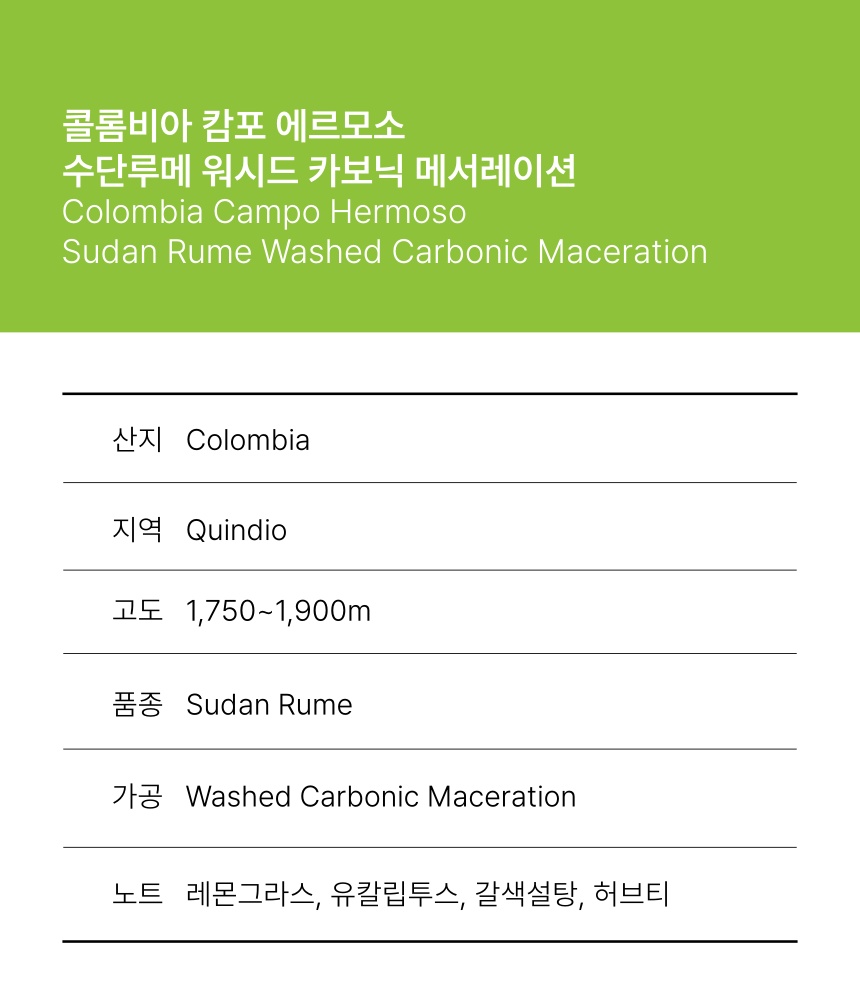 콜롬비아 캄포 에르모소 수단루메 워시드 카보닉 메서레이션